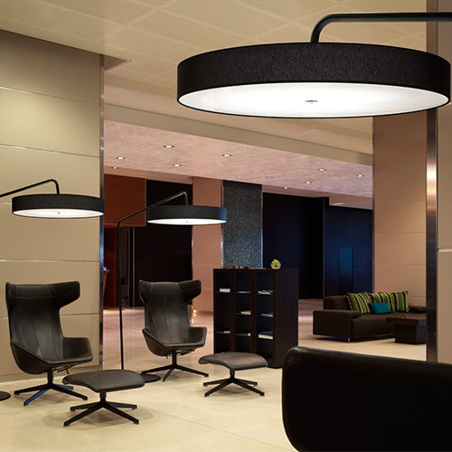Corner Floor by Modoluce is both stylish and functional. The structure is built from durable painted metal with a wide, flat base. The Corner Floor light features a unique rotating lampshade that can adjust the angle of light up to 30 degrees. The outer shade is avilable in cotton or washable fabric. Underneath the shade is a frosted plexiglass disc that ensures evenly diffused lighting. Color options for the Corner Floor lamp include white or black finishes.