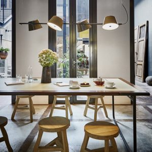 Marset's Tam Tam pendant light is a stylish and functional lighting solution. Designed by Fabien Dumas, the lamp comprises a lacquered metal structure, aluminum lampshade, and opal methacrylate diffuser. The lampshade has an adjustable 360° range of motion and can be personalized with multiple color finishes. The Tam Tam pendant light adapts to multiple spaces. It's suitable for long rooms, narrow hallways, corners, or transit areas.