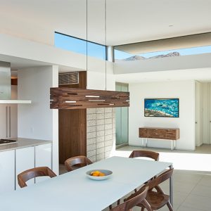 Each Cerno Aeris is unique and handcrafted from walnut wood. The woodgrain is unique to each unit. The Aeris is available in two size options to fit your room. The Aeris can be mounted to most celing styles including sloped ceiling styles. The various slits throughout the lighting fixtures allow light to flow through the fixture.
